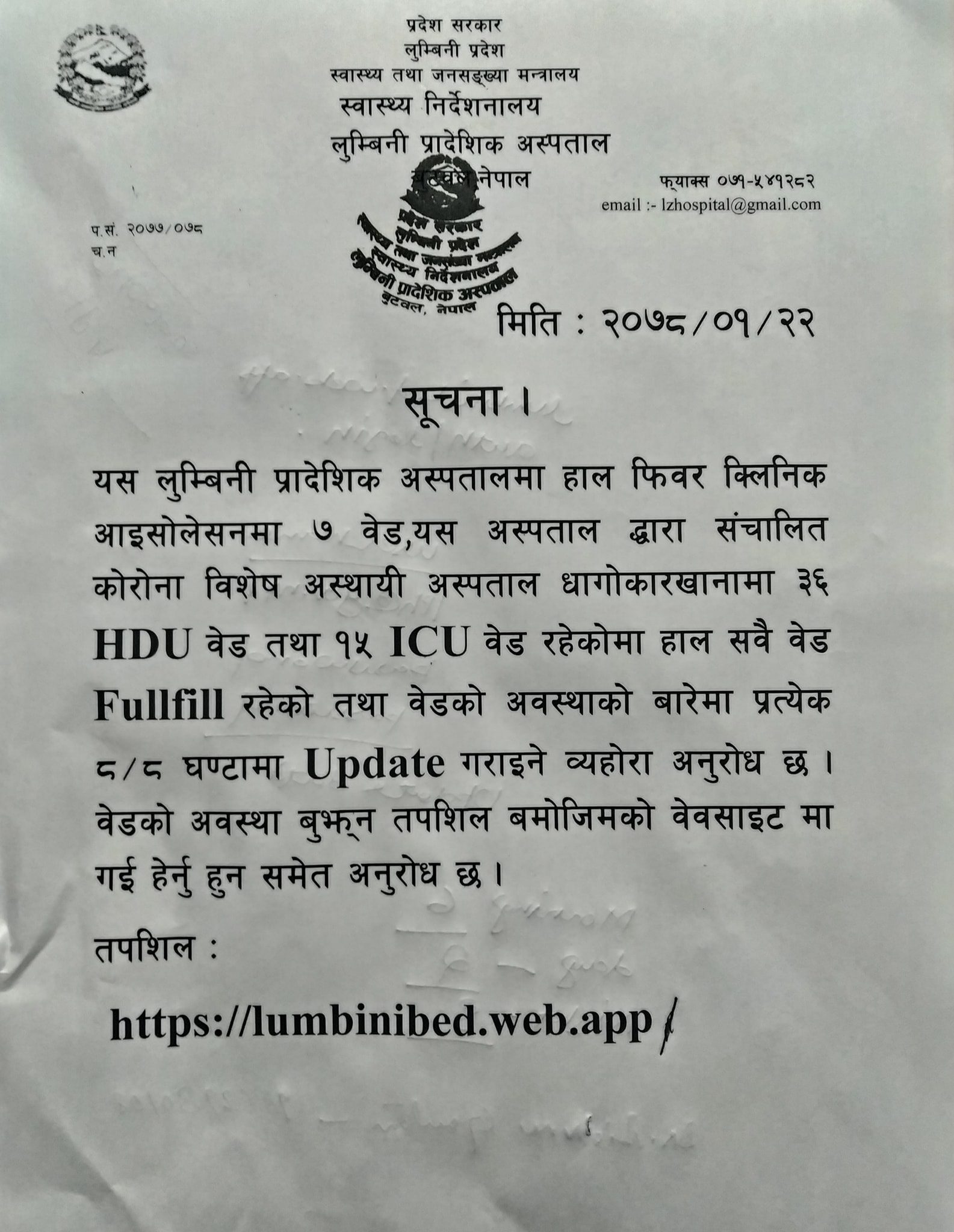 The HDU and ICU rooms of the COVID Special Hospital run by Lumbini Provincial Hospital are full. According to Pathak, 36 COVID infected patients are being treated in HDU and 15 in ICU.