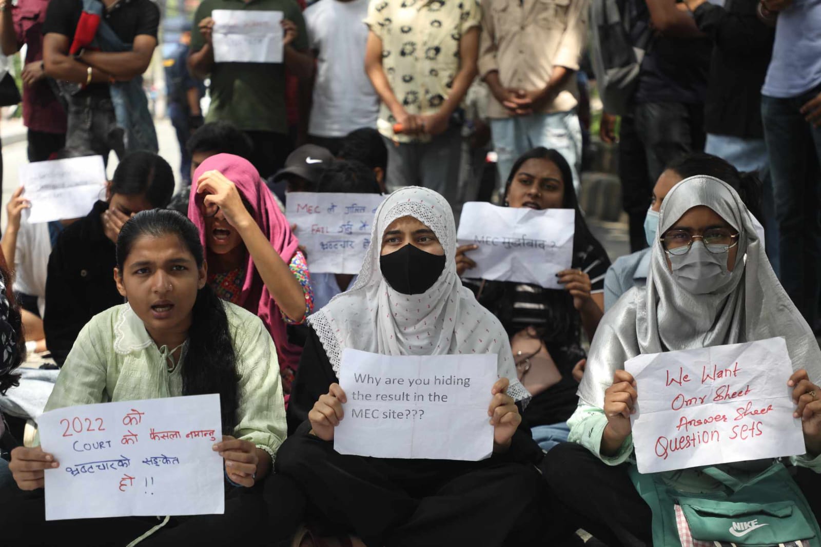 Students protested against discrepancies found in the results of the Graduate Medical Education Integrated Entrance Examination published by the Medical Education Commission on Wednesday at Maitighar Mandala.